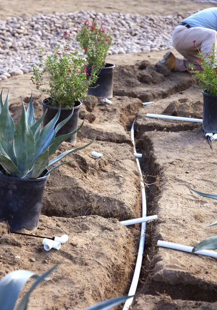 Sprinkler and drip irrigation systems distribute water in a controlled manner, preventing waste and ensuring your plants get the right amount of irrigation.